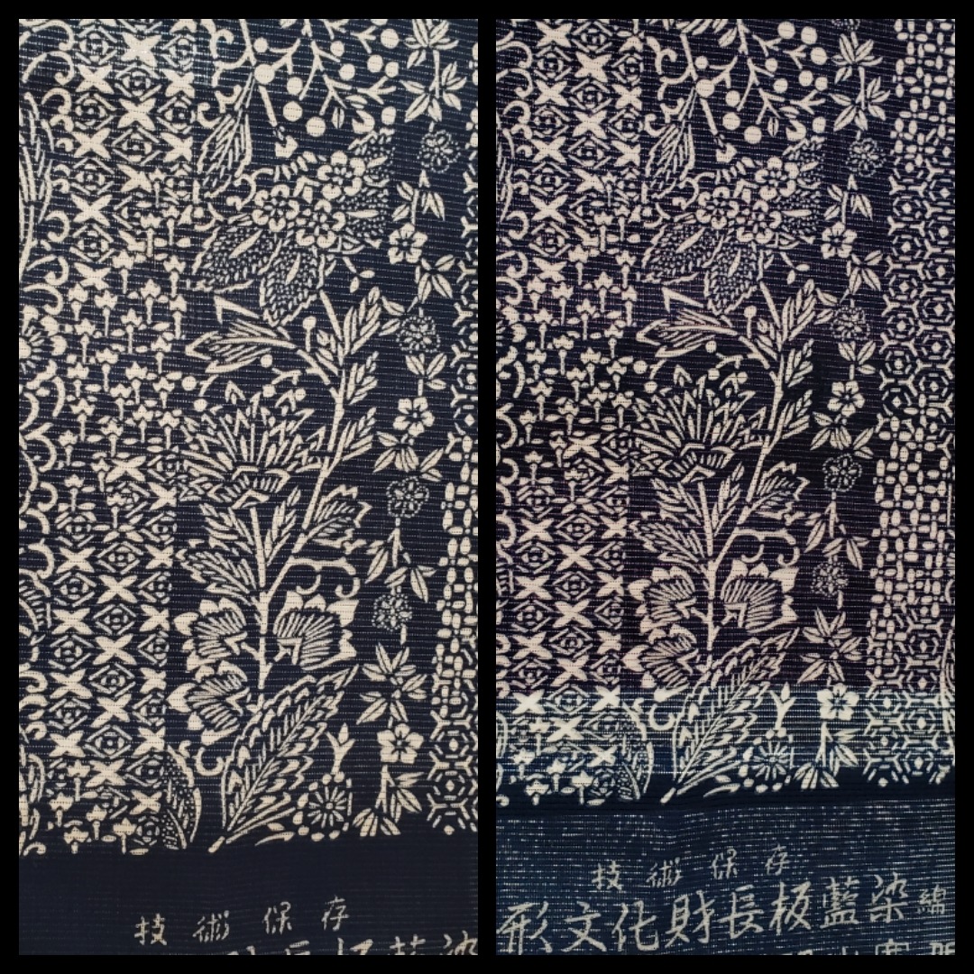 お客様からのご質問がありましたので、こちらで実際に真じまの綿きもので一番薄いきもの地の後ろに、向かって左にデニムアッシュ。右にあけび色を重ねてみました。後ろから光が差しているので、違いはよくわかりますね。