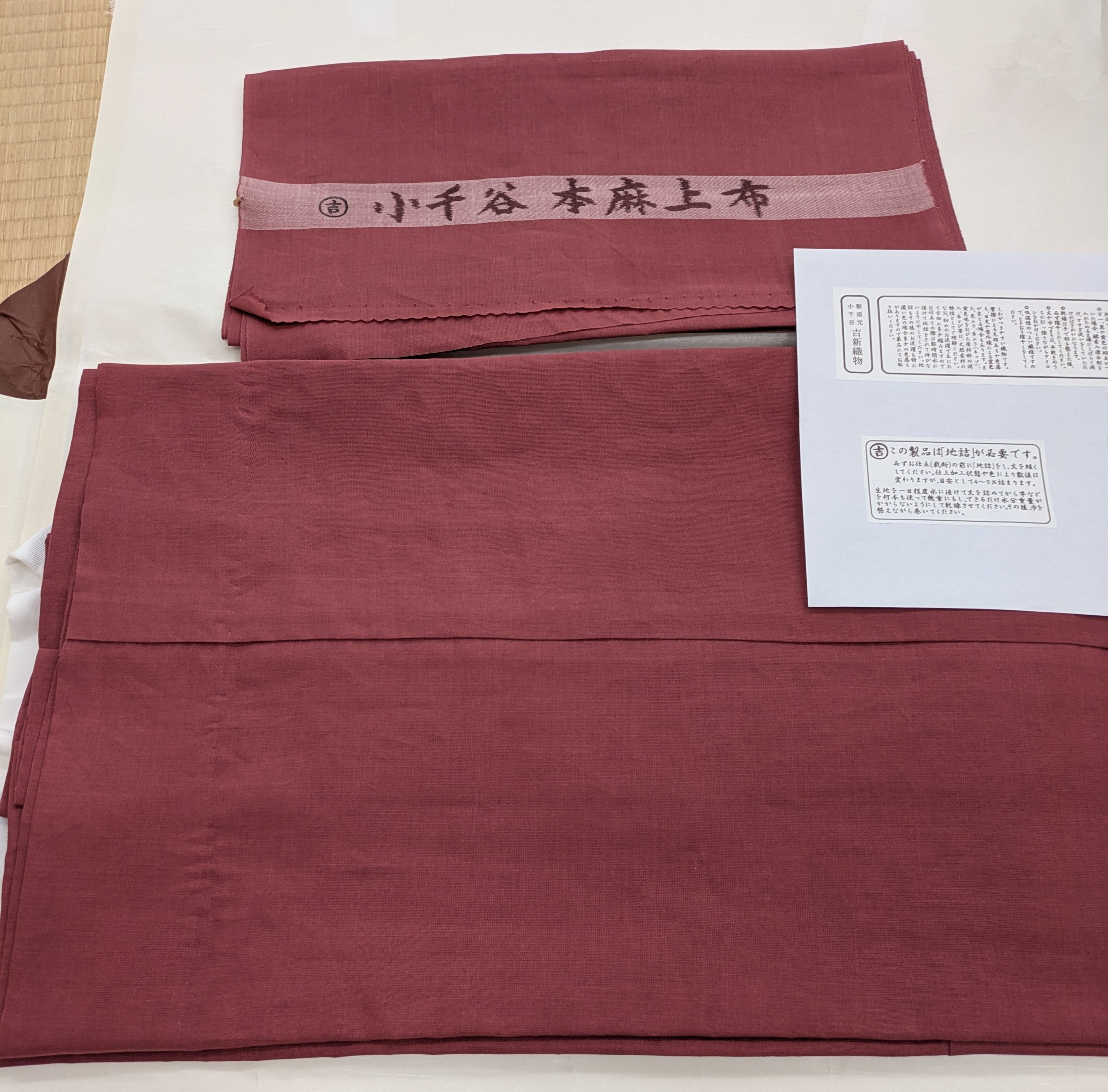 お買い上げ頂いた本麻上布襦袢をお仕立てします。